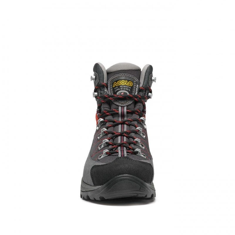 The water-resistant suede and Cordura upper offers protection and comfort while the Gore-Tex Extended Comfort Footwear guarantees waterproofness and breathability. The outsole package is made of a mono-density Eva midsole which gives support, stability, comfort, and cushioning. The Asolo/Vibram outsole has a self-cleaning design and it uses the MegaGrip compound which gives amazing grip, traction, and performance on wet and dried terrains. To complete the model a leather cap for additional front protection and the hardware lacing system for a fast and precise lace-up. Thanks to a different lasting board, the model is more flexible and lighter than all the other models of the line.