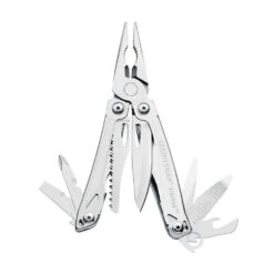A pocket-sized multi-tool with spring-action pliers, a saw, two knife blades, openers and more.