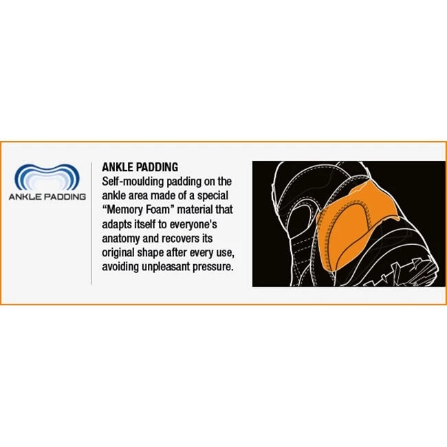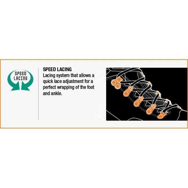 Thanks to the up-to-the-toe lace system, enriched with the new steel hooks and polymeric compound the fit is stable and precise.