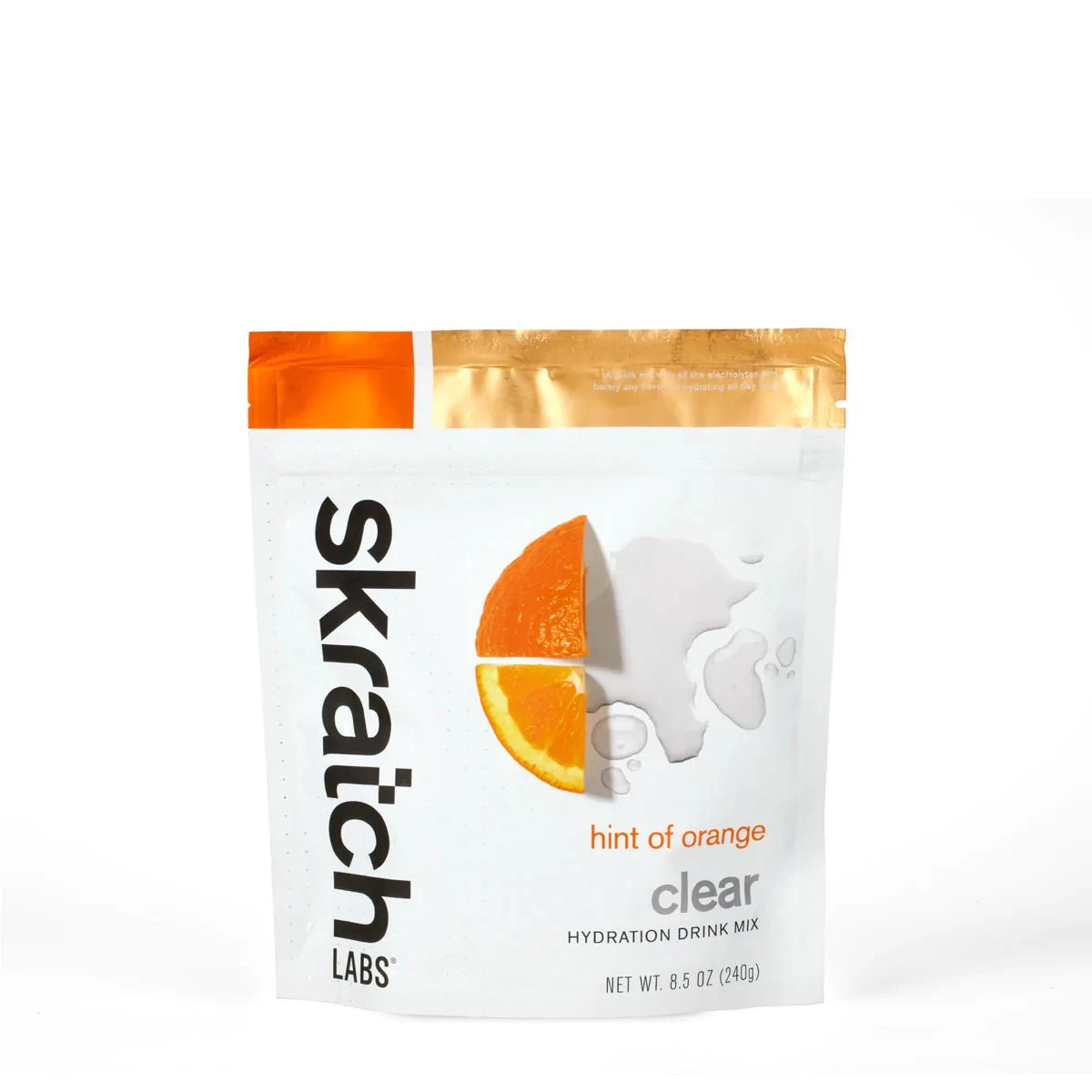 Skratch Labs Clear Hydration Mix is for when you just want to drink water but know you need a sports drink. Infused with a subtle hint of flavor from real lemons (or oranges) Clear Hydration gives you a crisp, light-tasting, refreshing way to get the electrolytes you need.