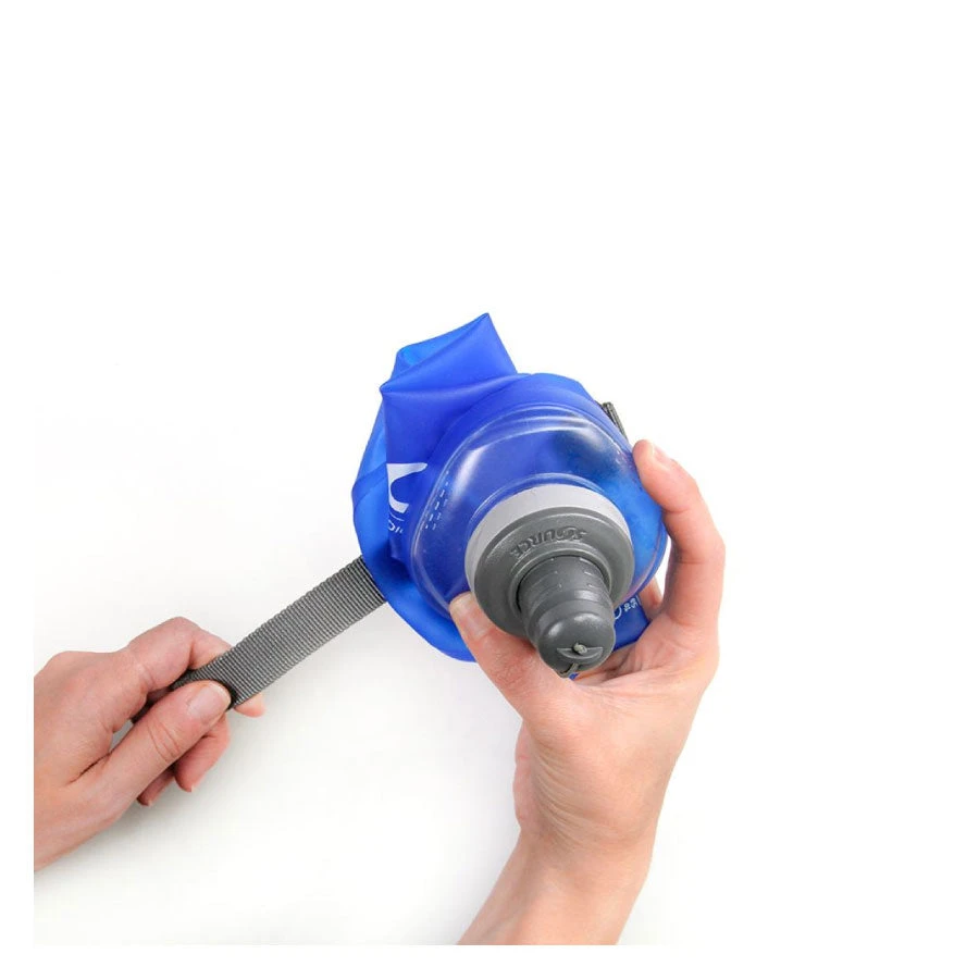 Lightweight foldable bottle with durable webbing handle. Ideal for camping or any other outdoor activity. Bottle folds flat when empty.