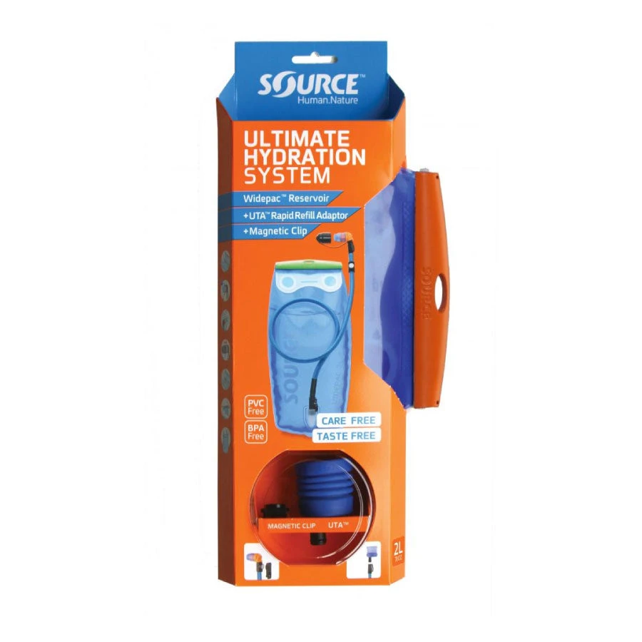 The Ultimate 2 Litres features all of Source’s innovations and experience developing hydration systems including the groundbreaking Widepac™ hydration system with TasteFree™ and GrungeGuard™ low maintenance technology, the UTA – Universal Tube Adapter, the Magnetic Clip and more.