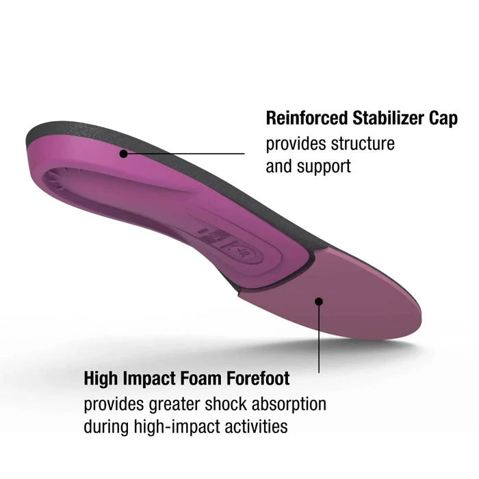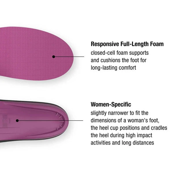 With a slimmer heel and an arch length to fit the proportions of the female foot, and a cushioned, shock-absorbing foam pad at the forefoot, Superfeet BERRY shoe inserts were designed for women who live on their feet.